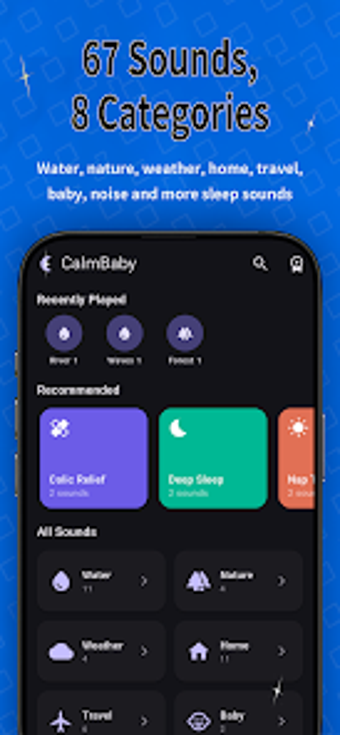 CalmBaby är en gratis vit brus-mixer designad för att hjälpa spädbarn och småbarn att sova bättre. Programmet erbjuder 67 olika ljud från 8 kategorier, inklusive naturliga ljud som vatten och skog, samt hushållsljud som fläktar och dammsugare. Användare kan blanda flera ljud samtidigt och justera volymen för varje spår individuellt. Det finns även rekommenderade ljudinställningar som är skräddarsydda för att lindra kolik och främja djup sömn.